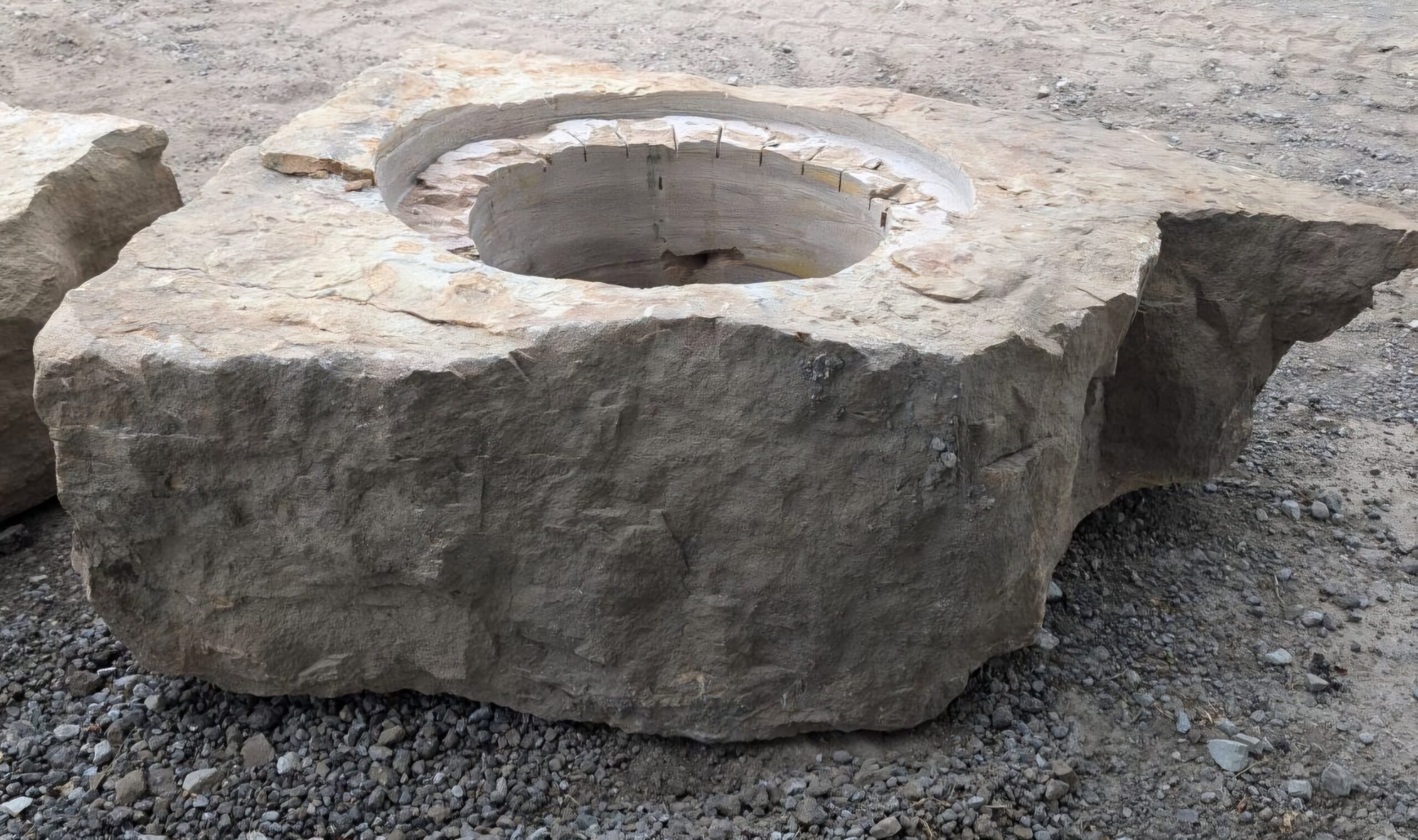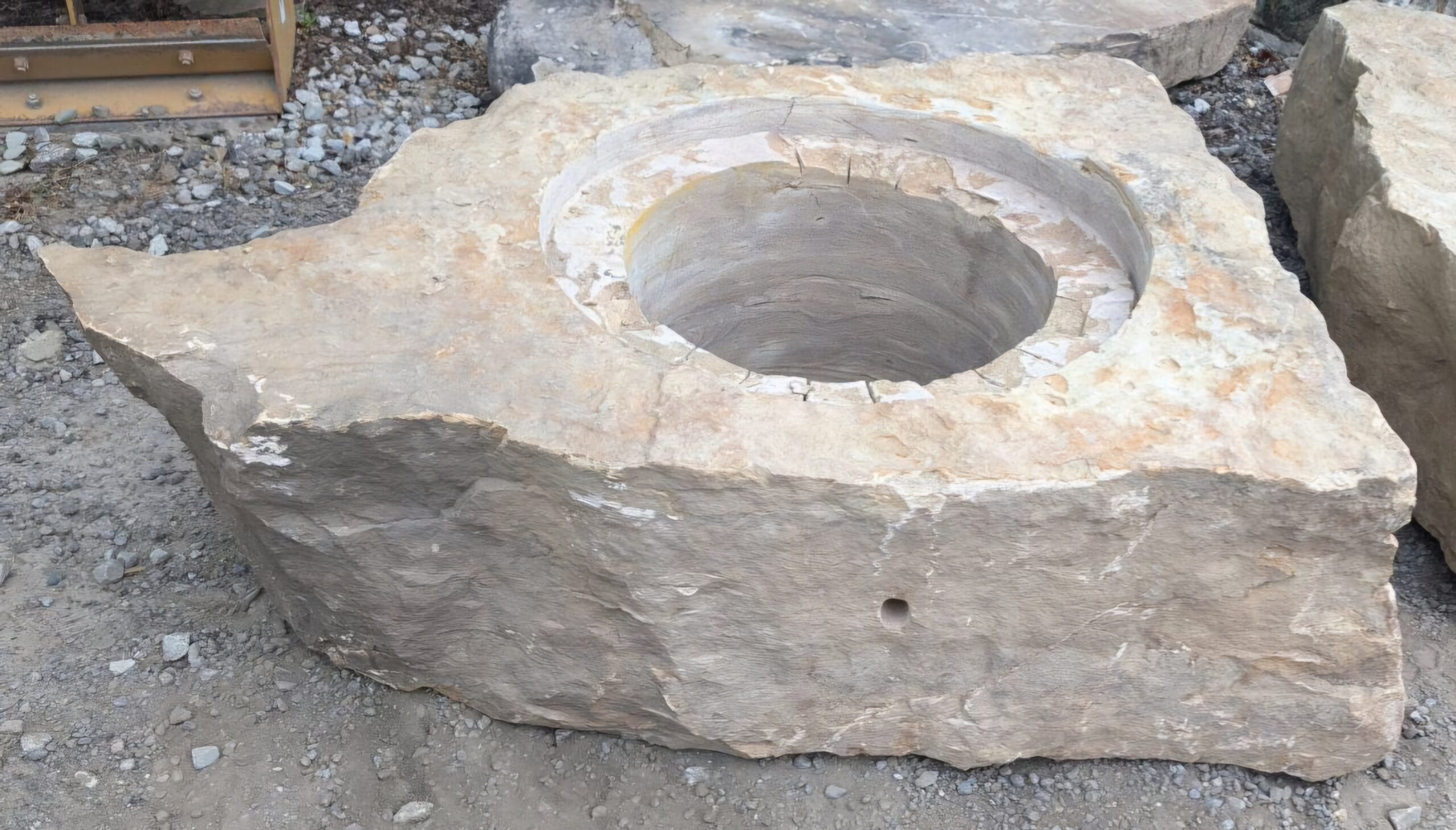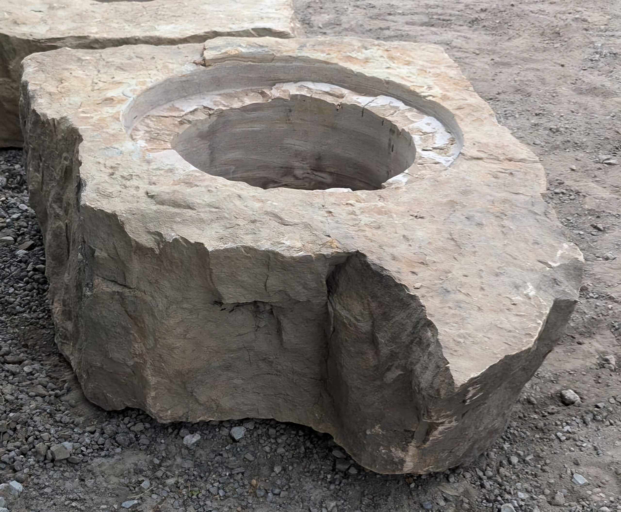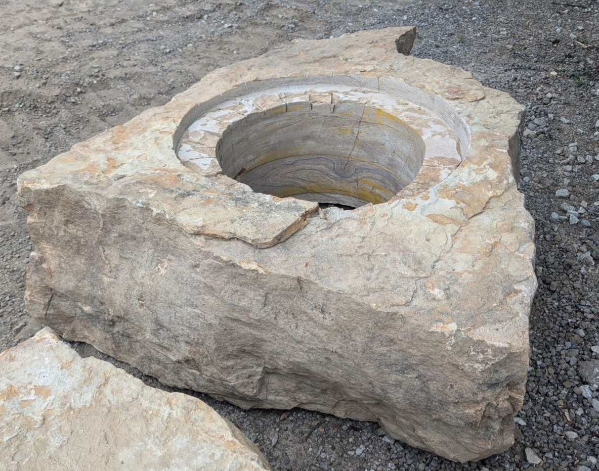 The “Cored Jumbo” Fireboulder is a one of a kind outdoor fire feature , built from a natural stone boulder and equipped with a fire burner. The “Cored Jumbo” Fireboulder possesses a 30″ cutout that is designed to accommodate a 22″ burner system. Dimensions/weights of these boulders are variable, but they typically weigh 2,000+ pounds.