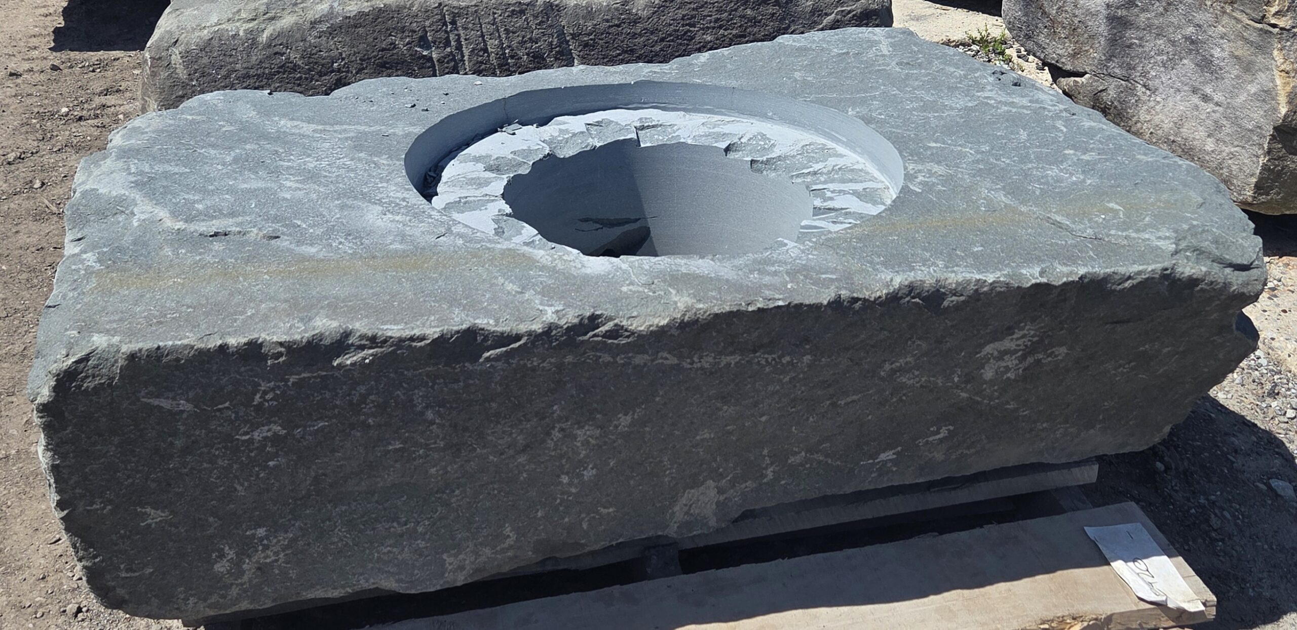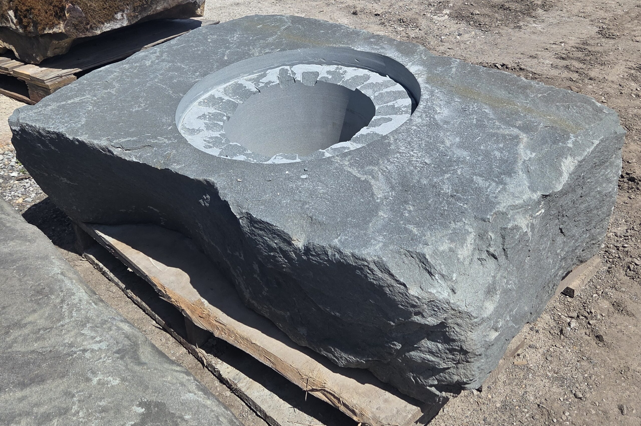 The “Cored XL” Fireboulder is a one of a kind outdoor fire feature , built from a natural stone boulder and equipped with a fire burner.  The “Cored XL” Fireboulder possesses a 22″ cutout that is designed to accommodate a 16″ burner system. Dimensions/weights of these boulders are variable, but they typically weigh between 1,200 and 2,000+ pounds.