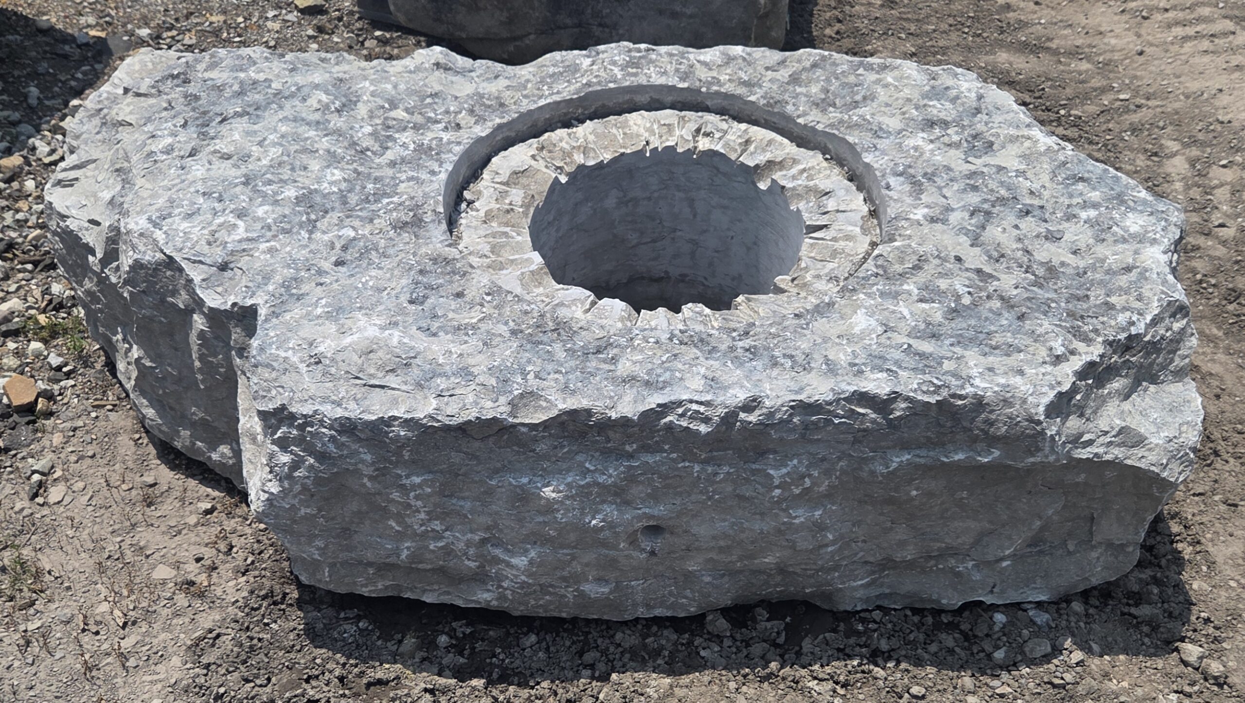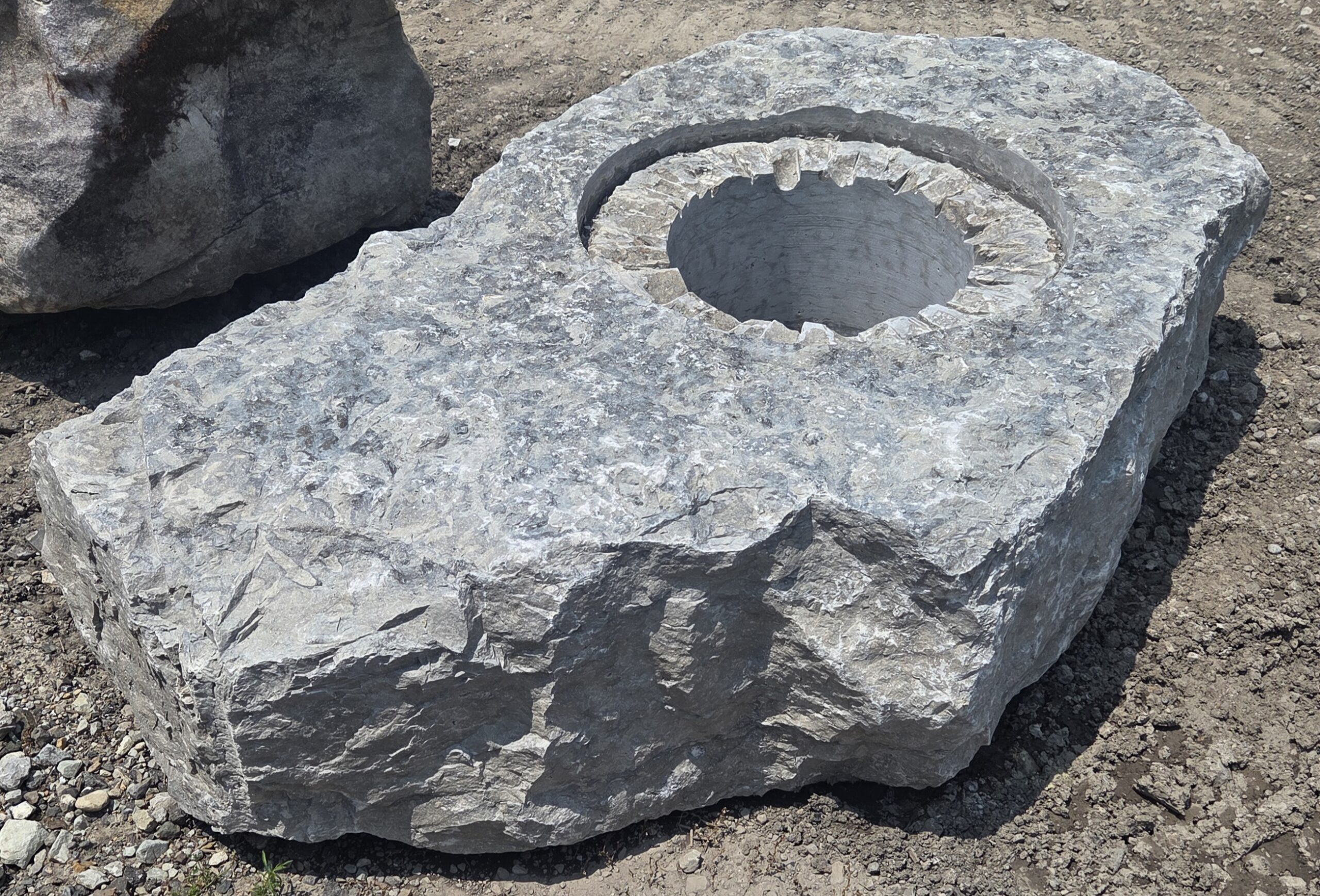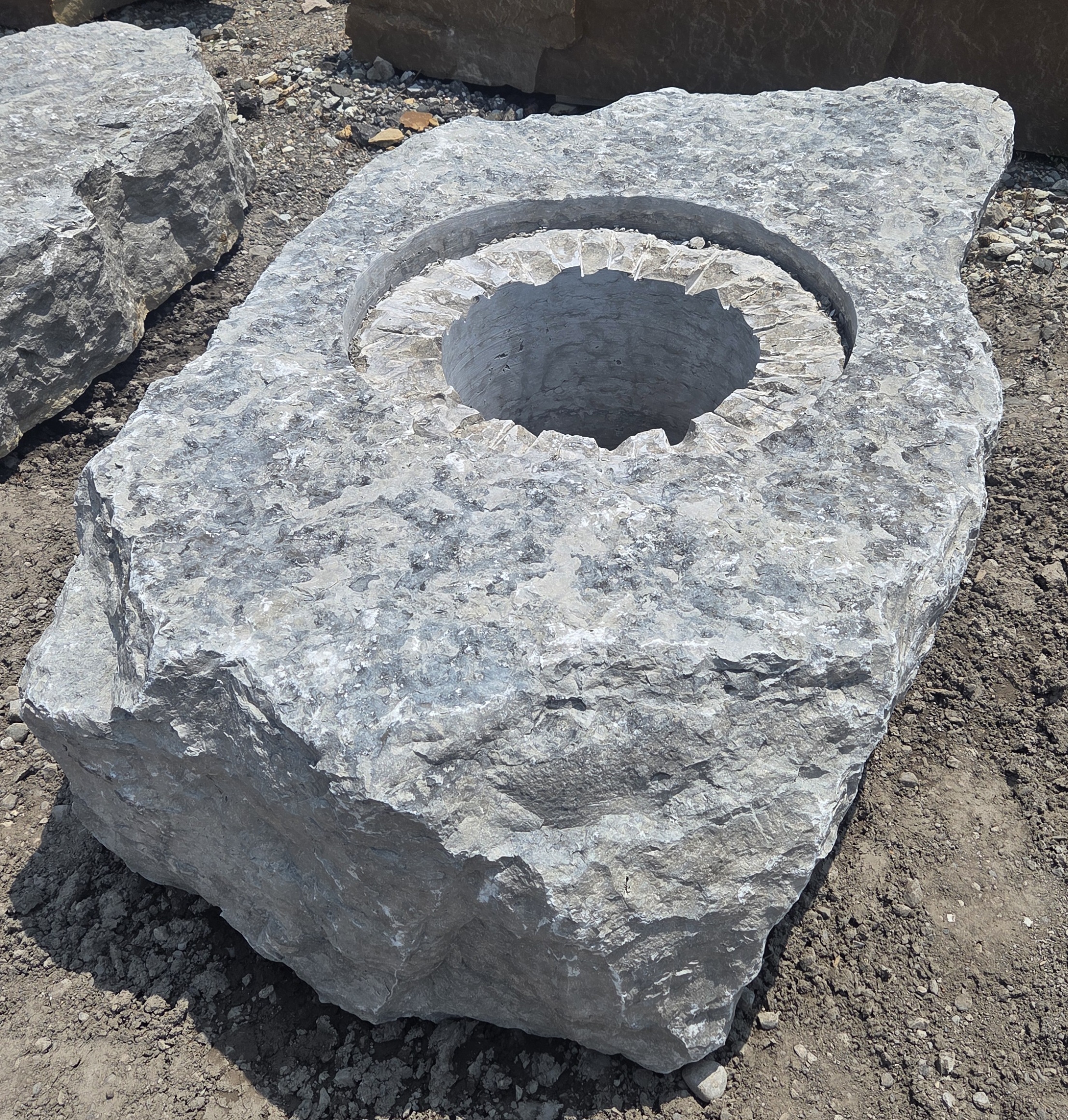 The “Cored Jumbo” Fireboulder is a one of a kind outdoor fire feature , built from a natural stone boulder and equipped with a fire burner. The “Cored Jumbo” Fireboulder possesses a 30″ cutout that is designed to accommodate a 22″ burner system. Dimensions/weights of these boulders are variable, but they typically weigh between 1,800-2,000+ pounds.