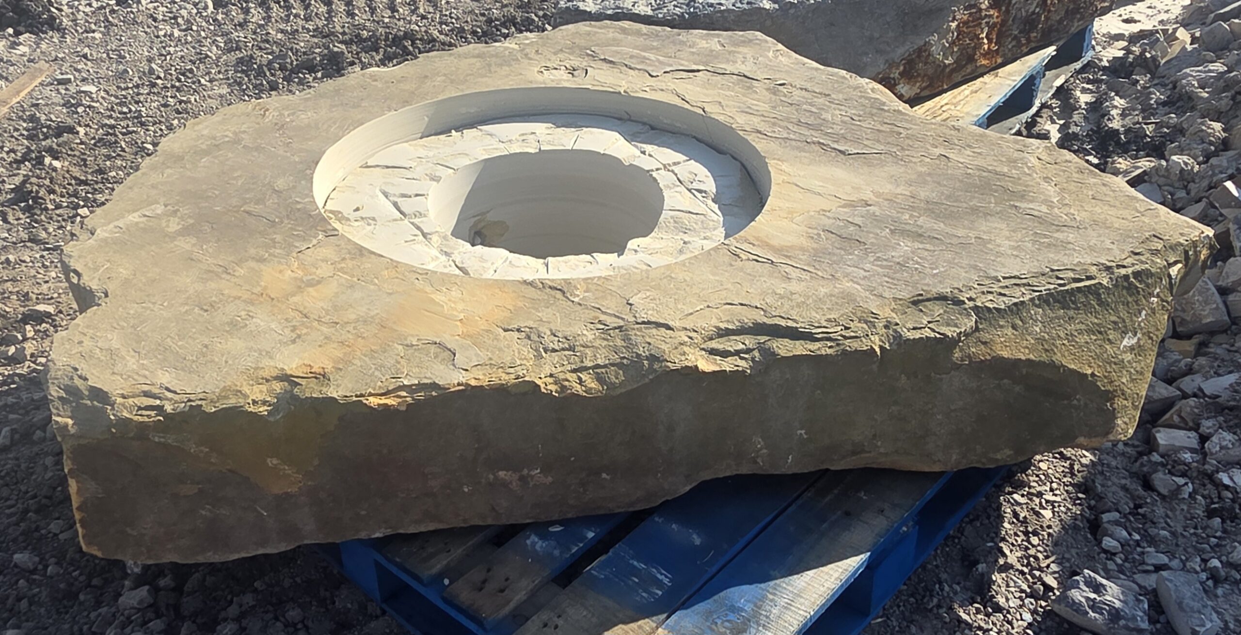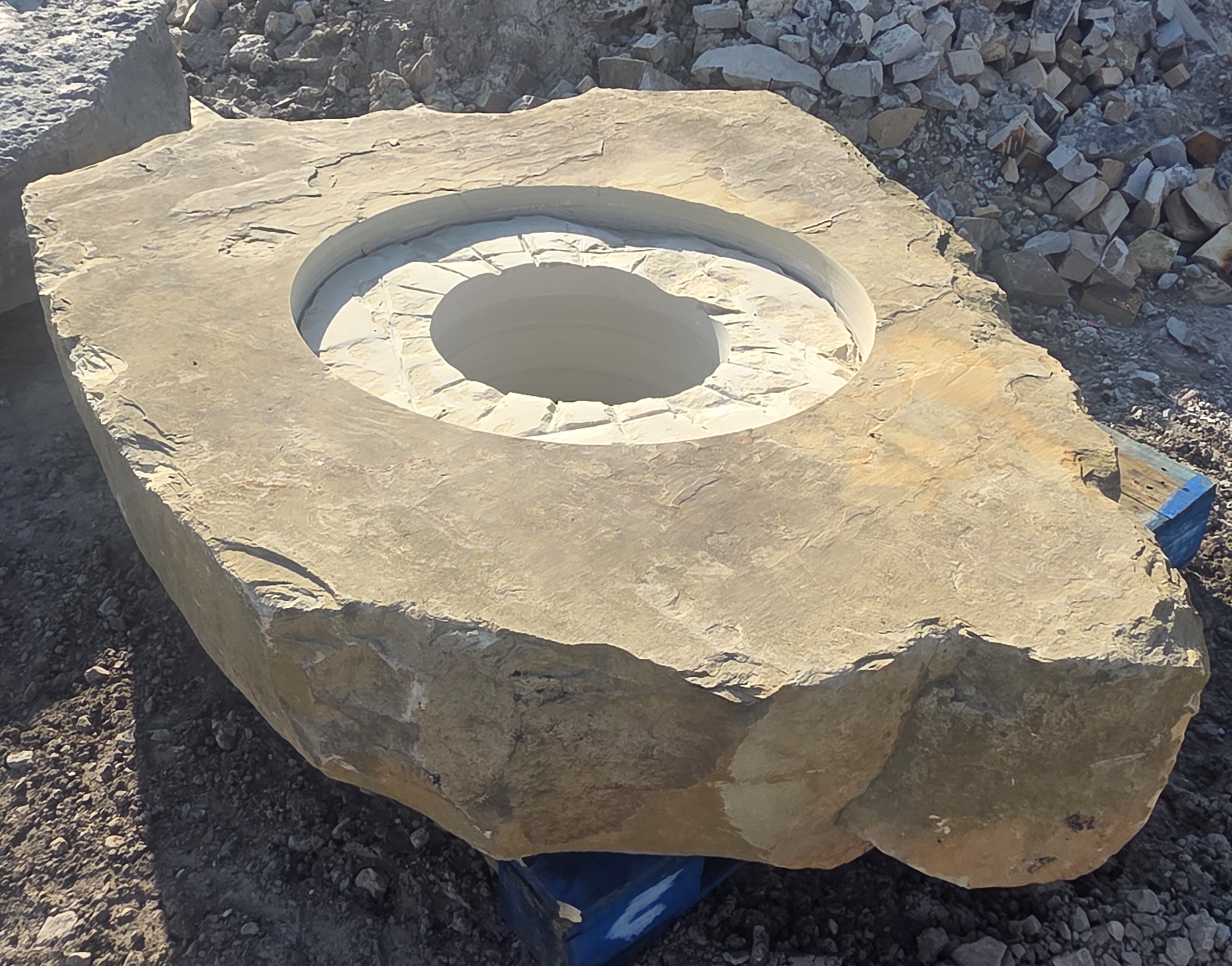 The “Cored Jumbo” Fireboulder is a one of a kind outdoor fire feature , built from a natural stone boulder and equipped with a fire burner.  The “Cored Jumbo” Fireboulder possesses a 30″ cutout that is designed to accommodate a 22″ burner system. Dimensions/weights of these boulders are variable, but they typically weigh between 1,800-2,000+ pounds.