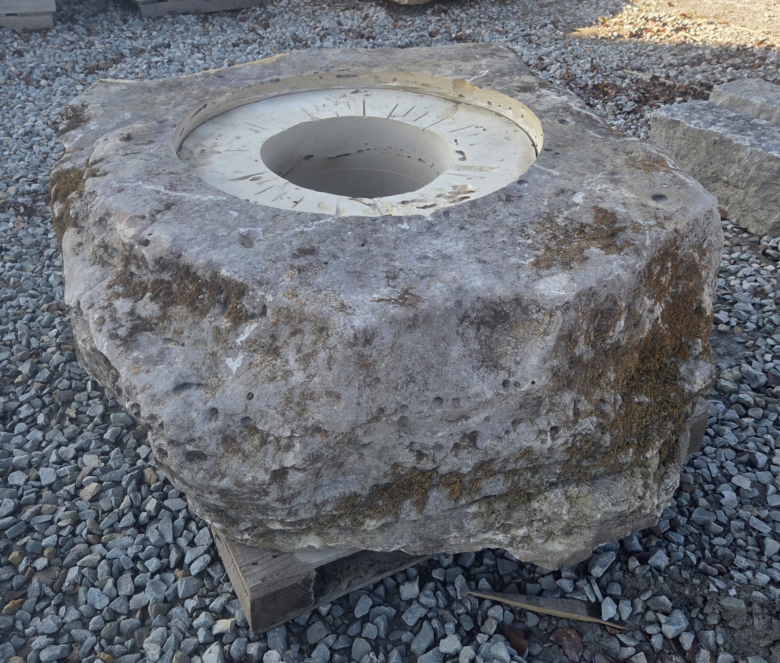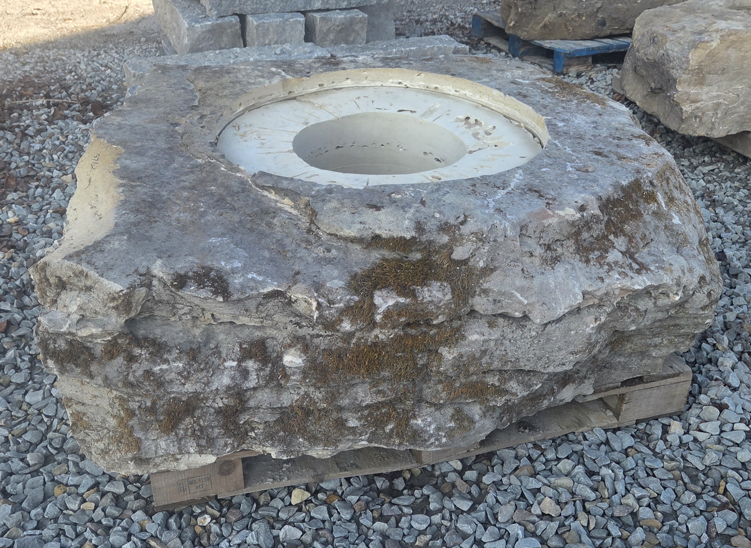 The “Cored Jumbo” Fireboulder is a one of a kind outdoor fire feature , built from a natural stone boulder and equipped with a fire burner.  The “ Cored Jumbo ” Fireboulder possesses a 30″ cutout that is designed to accommodate a 22″ or 24” burner system. Dimensions/weights of these boulders are variable, but they typically weigh 2,000+ pounds.