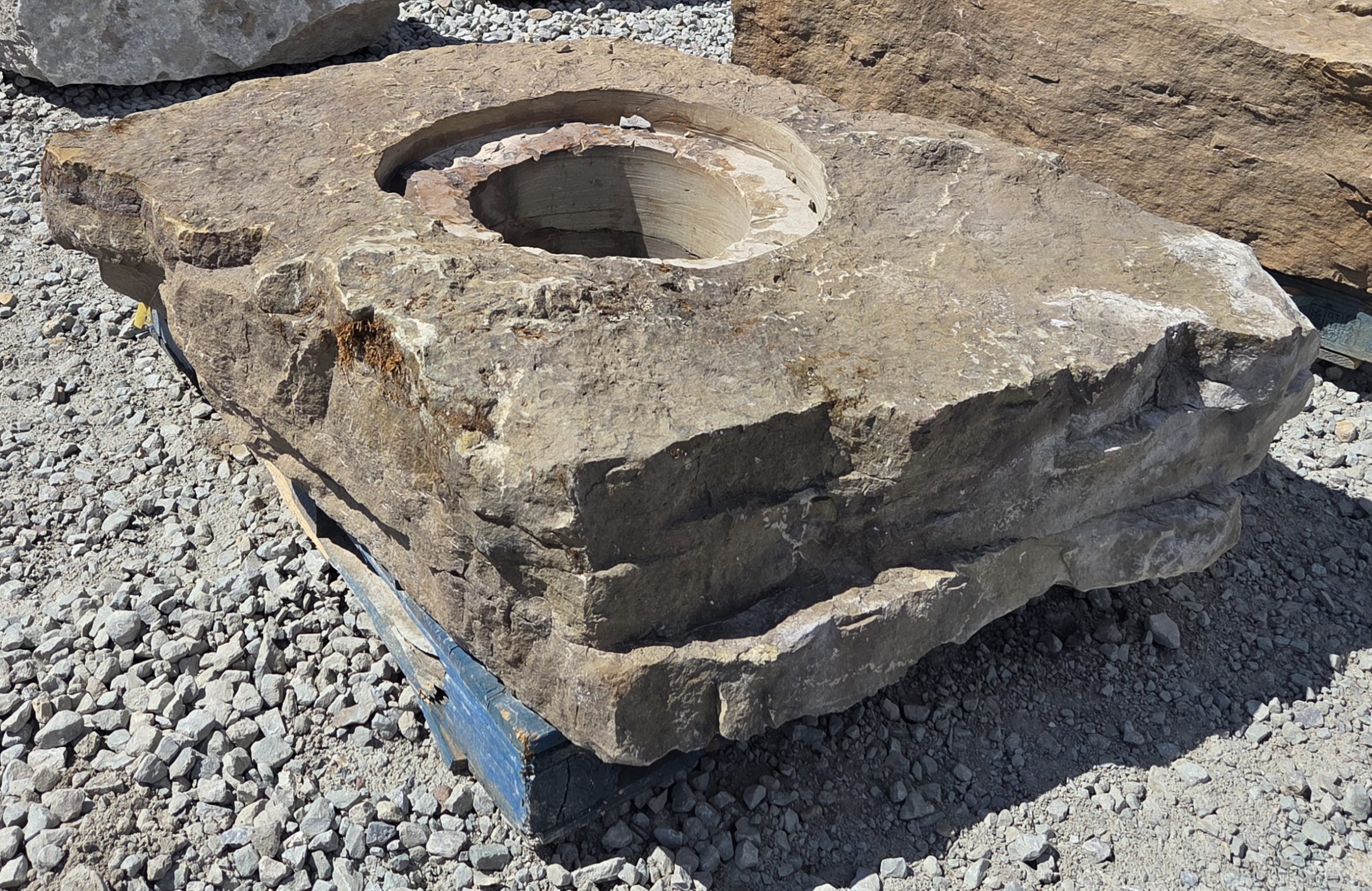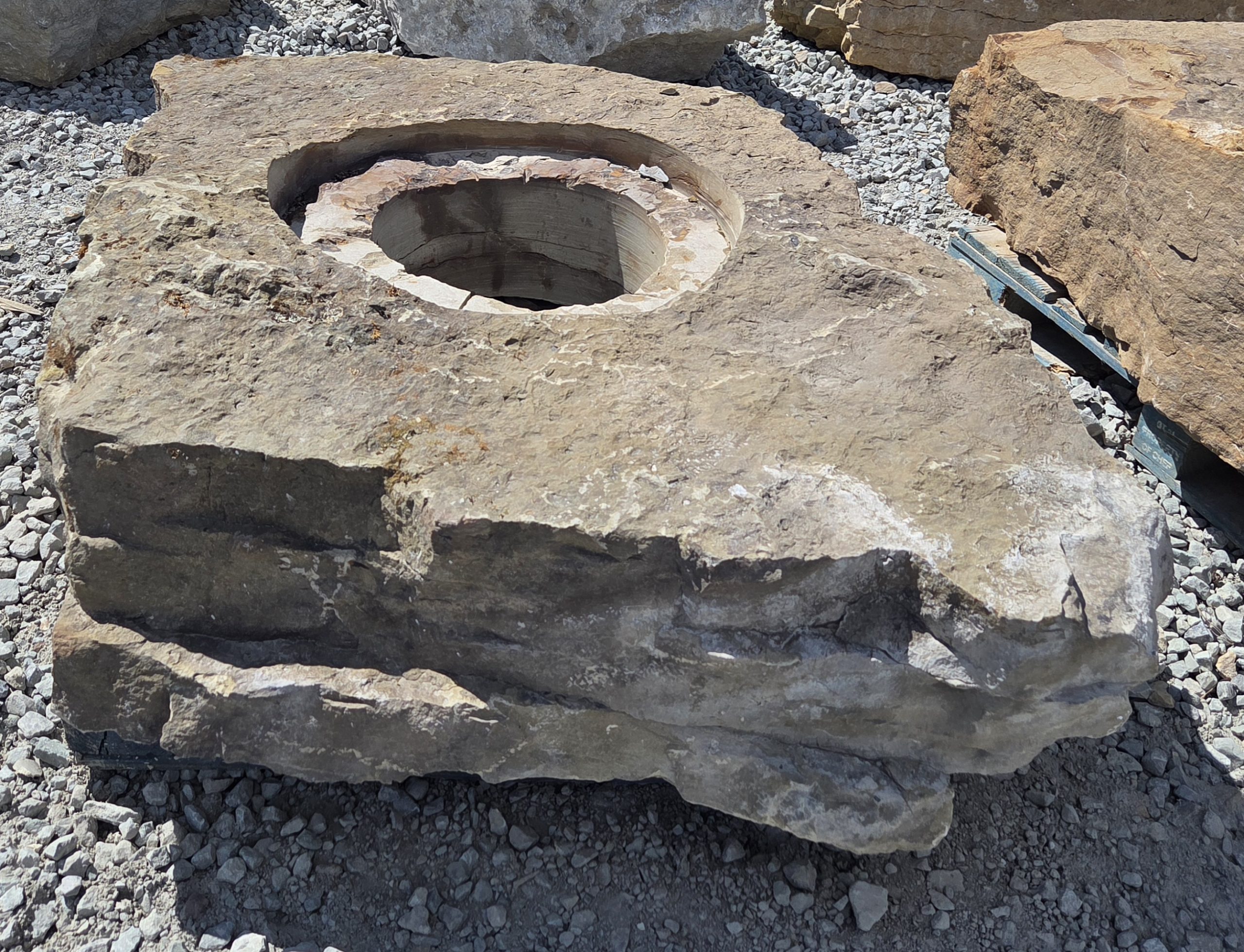 The “Cored Jumbo” Fireboulder is a one of a kind outdoor fire feature , built from a natural stone boulder and equipped with a fire burner. The “ Cored Jumbo ” Fireboulder possesses a 30″ cutout that is designed to accommodate a 22″ or 24” burner system. Dimensions/weights of these boulders are variable, but they typically weigh 2,000+ pounds.
