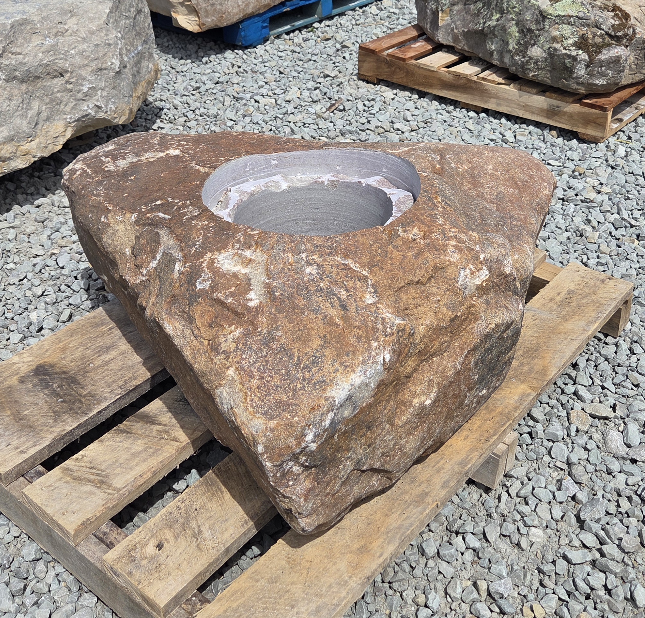 Freight will be verified for this product. The “Cored Large” Fireboulder is a one of a kind outdoor fire feature , built from a natural stone boulder and equipped with a fire burner.  The “Cored Large” Fireboulder possesses a 16″ cutout that is designed to accommodate a 12″ burner system. Dimensions/weights of these boulders are variable, but they typically weigh between 1,200 and 2,000+ pounds. The “Cored Large” FireBoulder functions seamlessly as an accent or focal point in any landscape or hardscape design, and are ideal for patios/outdoor living spaces.