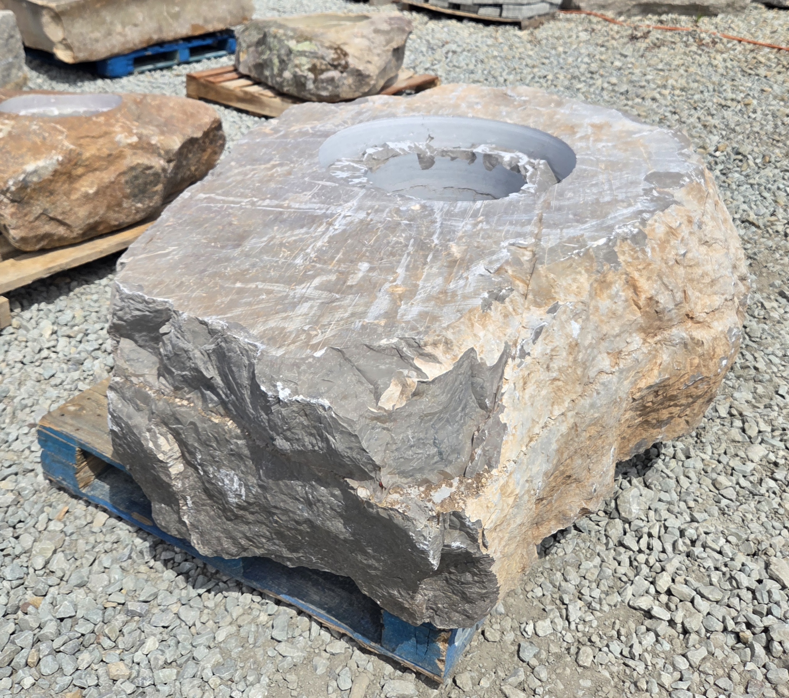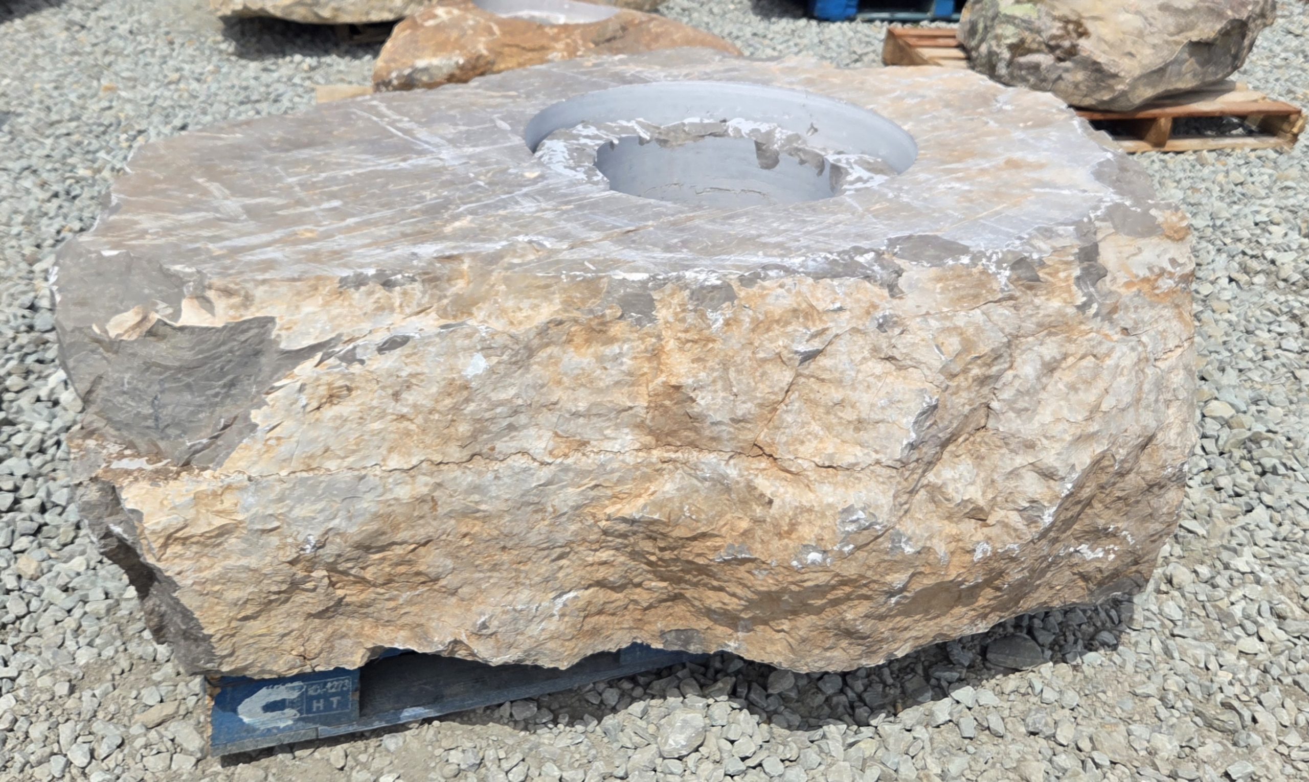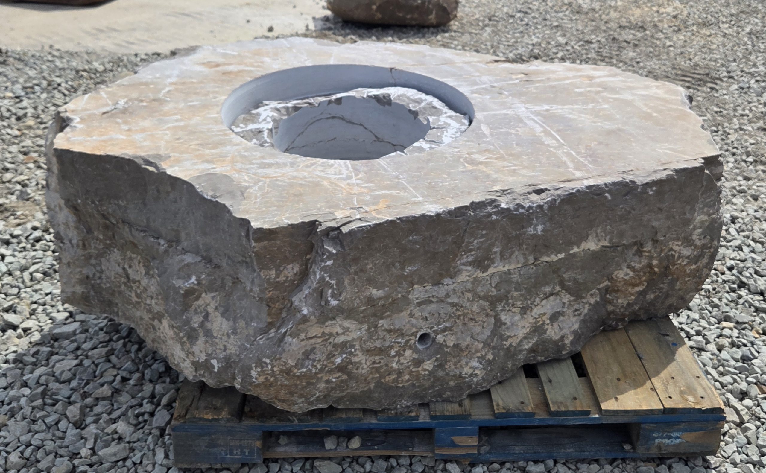 The “Cored Jumbo” Fireboulder is a one of a kind outdoor fire feature , built from a natural stone boulder and equipped with a fire burner.  The “ Cored Jumbo ” Fireboulder possesses a 30″ cutout that is designed to accommodate a 22″ or 24” burner system. Dimensions/weights of these boulders are variable, but they typically weigh 2,000+ pounds.