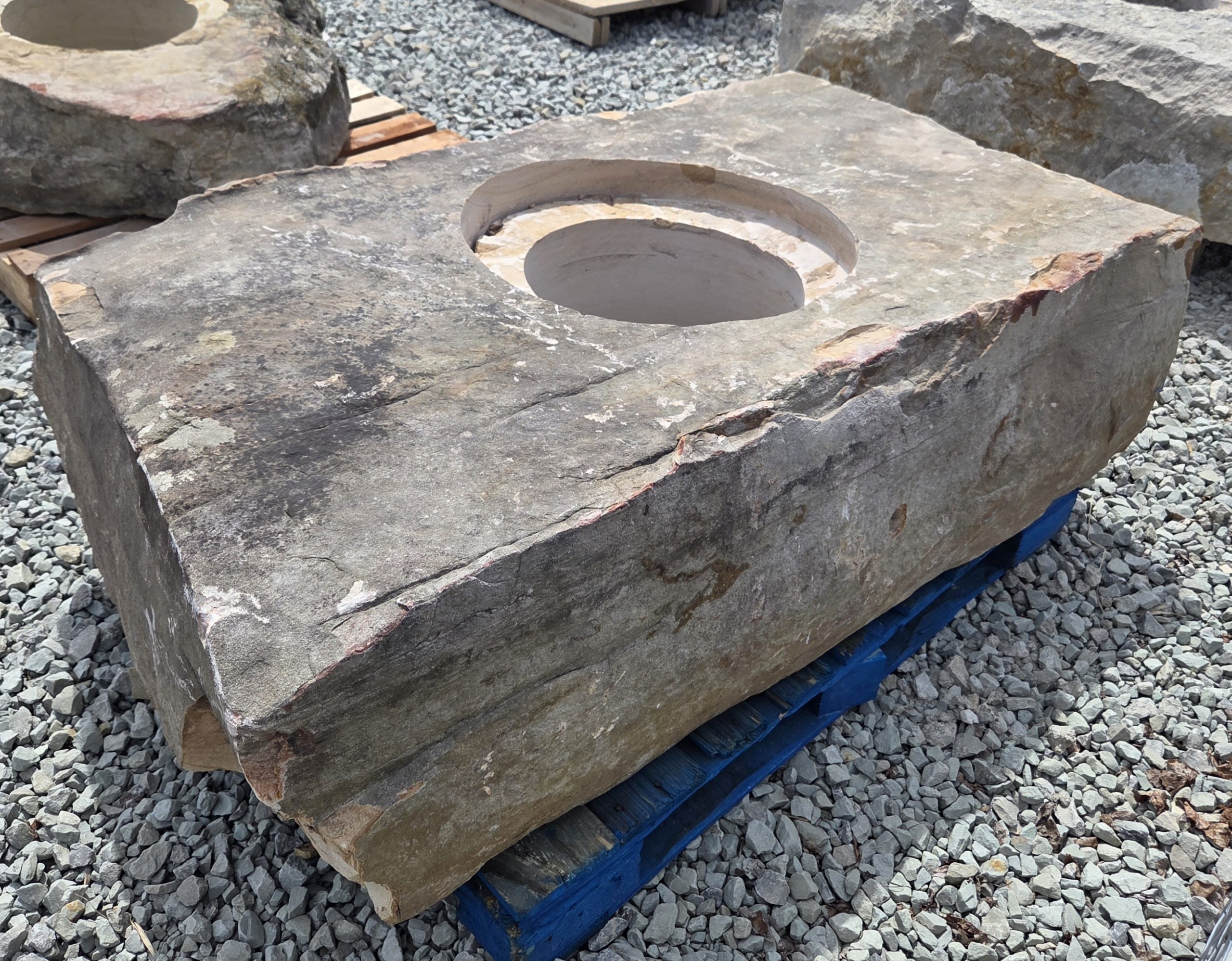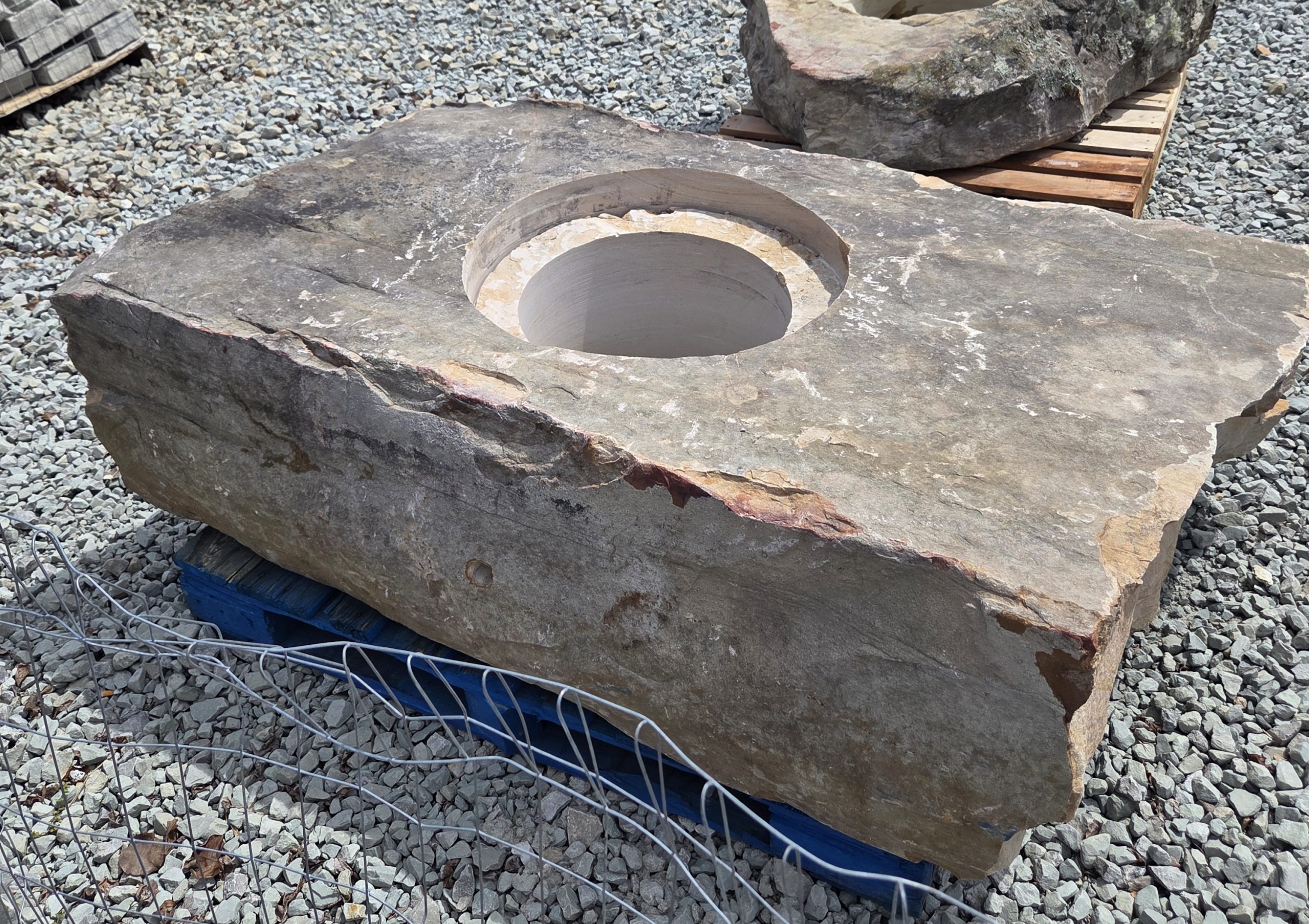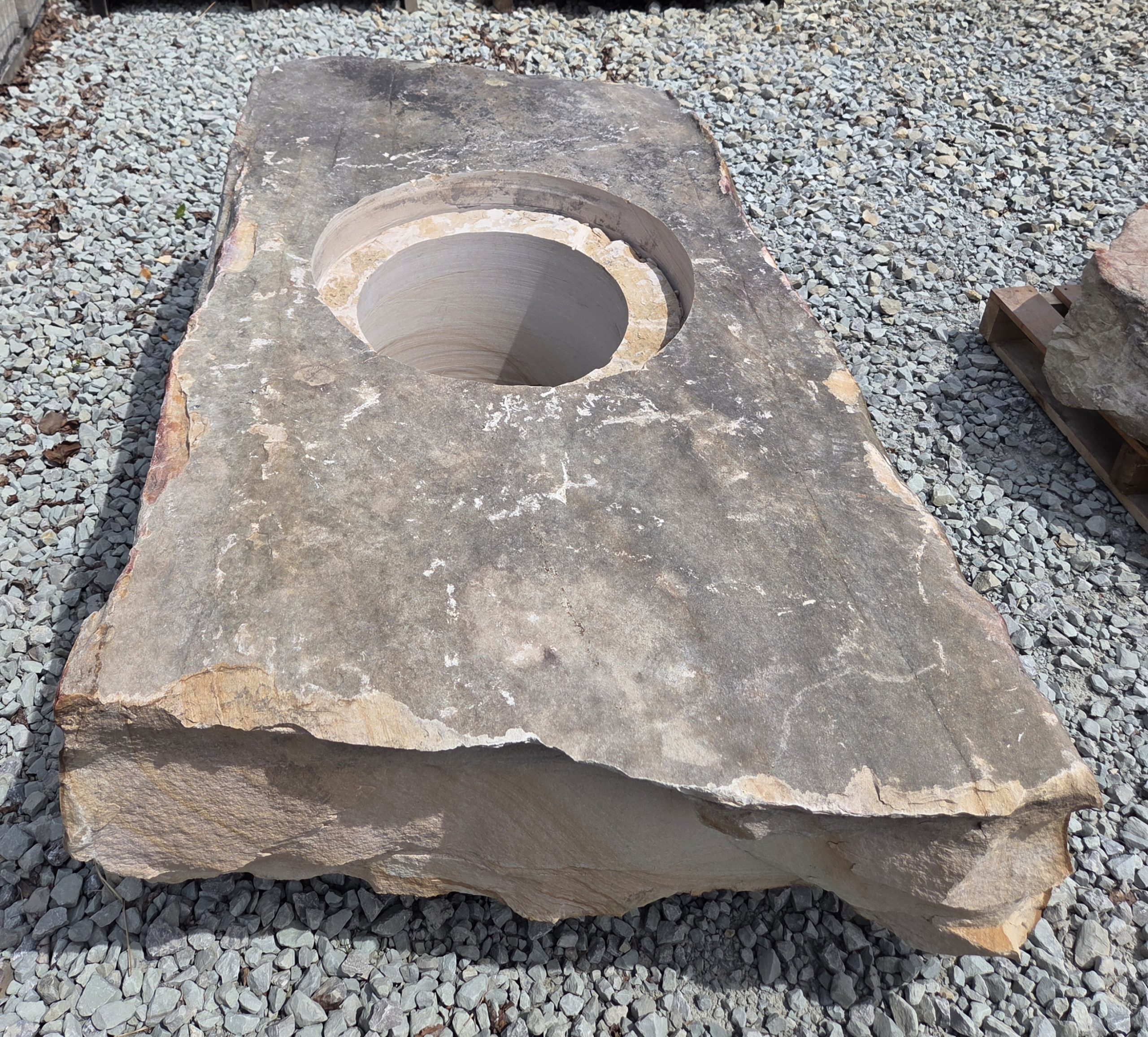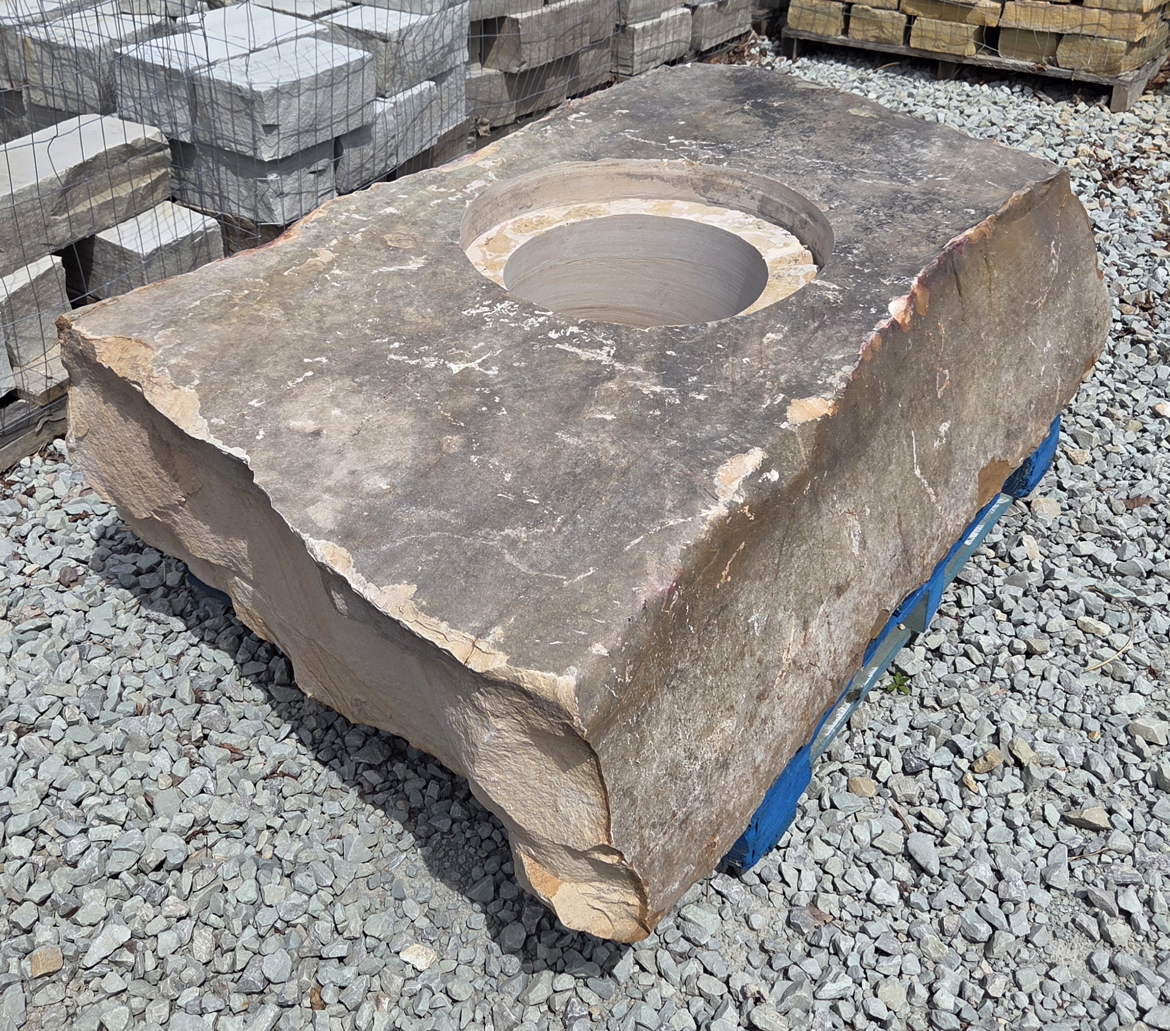 The “Cored XL” Fireboulder is a one of a kind outdoor fire feature , built from a natural stone boulder and equipped with a fire burner.  The “Cored XL” Fireboulder possesses a 22″ cutout that is designed to accommodate a 16″ burner system. Dimensions/weights of these boulders are variable, but they typically weigh between 1,200 and 2,000+ pounds.